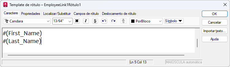Nota: Na caixa de diálogo, o símbolo de diâmetro é exibido como %%, mas ele é corretamente exibido na legenda. O espaço não separável não está disponível em sistemas operacionais de byte duplo.