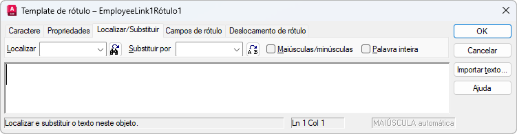 Define a sequência de texto utilizada para substituir o texto na caixa Localizar.
