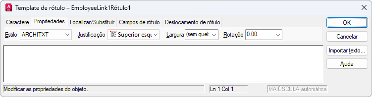 Aplica um estilo de texto à legenda. O estilo atual é salvo na variável de sistema ESTILODETEXTO. Formatação de caracteres para fontes, atributos de altura e negrito ou itálico é sobreposta se você aplicar um novo estilo a um modelo de legenda existente. Empilhamento, sublinhado e atributos de cor são mantidos nos caracteres para os quais um novo estilo é aplicado. Estilos que têm efeitos retroativos ou de cabeça para baixo não são aplicados. Se um estilo definido com um efeito vertical for aplicado a uma fonte SHX, o texto será exibido horizontalmente na caixa de diálogo Modelo de legenda.