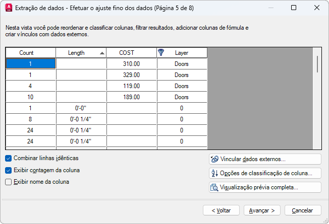 Quando estiver satisfeito com a aparência da tabela, a extração estará completa quando você inserir a tabela no desenho. Se precisar compartilhar as informações extraídas com outros no projeto, você pode enviar os mesmos dados extraídos para um arquivo externo.