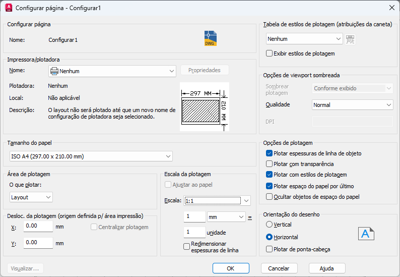 Ao plotar um layout, é plotado tudo o que estiver dentro da área de impressão do tamanho de papel especificado, com a origem calculada desde 0,0 no layout.
