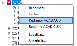 Nota: Ao redefinir, somente os arquivos CUIx encontrados na pasta UserDataCache sob o local de instalação do programa podem ser redefinidos.
