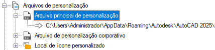 - No Explorador de arquivos, vá até <unidade>:\Usuários\<nome do perfil do usuário>\AppData\Roaming\Autodesk\<nome do produto>\<número da versão>\<idioma>\support\<nome do arquivo de personalização>.cuix.