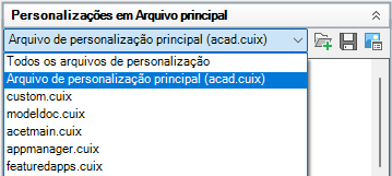Criar, renomear, redefinir ou restaurar arquivos de personalização (CUIx) com o editor Personalizar a interface do usuário (CUI). Selecione os arquivos de personalização principal ou corporativa para o programa.