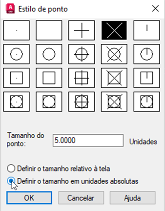 Podemos escolher se o tamanho do objeto de ponto é determinado pelo tamanho da tela de exibição, o que significa que o tamanho do ponto dependerá do zoom em que estamos quando criamos o ponto ou se ele está definido como um tamanho absoluto.