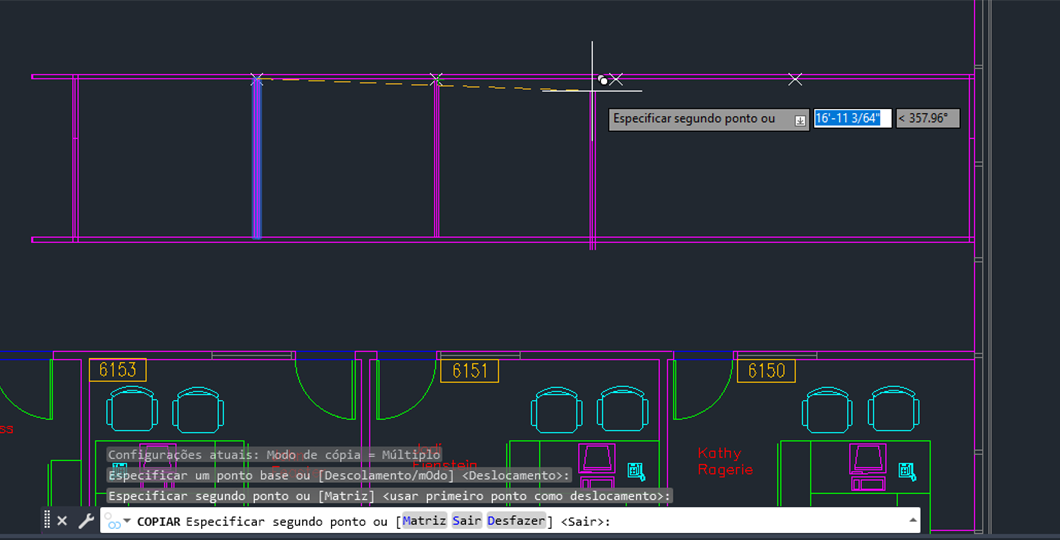 Agora podemos facilmente dizer para onde nossas paredes devem ir. Utilize o comando LINHA para criar uma parede e, em seguida, o comando COPIAR para duplicar uma parede onde cada ponto está localizado.