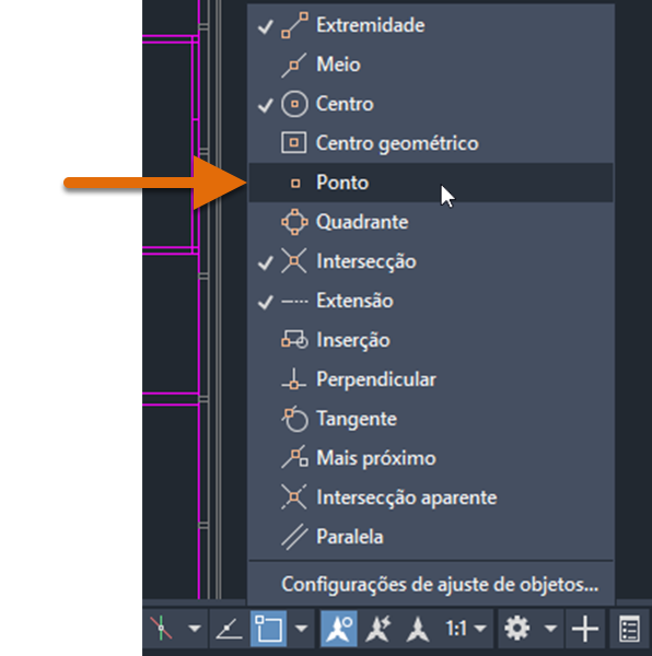 Quando ativado, o botão Snap ao objeto tem uma cor de fundo azul.