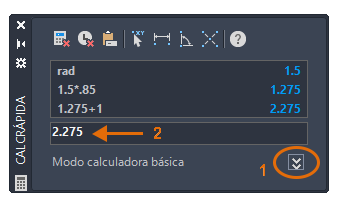 O recurso Colar valor é particularmente prático, pois ele copia o resultado da calculadora atual no prompt na janela de comandos. Isso pode ser um raio, uma distância ou um valor de deslocamento calculado.
