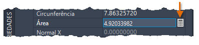 Por exemplo, crie um círculo e exiba a paleta Propriedades. Quando você selecionar o círculo, uma das propriedades geométricas será Área. Se você clicar no ícone, a QuickCalc será exibida, e você poderá calcular um novo valor para a área, como dividi-la por 3. Quando você clicar em Aplicar na parte inferior da QuickCalc, o tamanho do círculo será ajustado.
