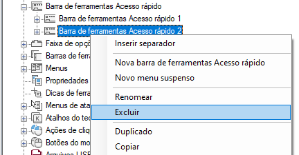 Uma nova barra de ferramentas de acesso rápido (denominada Barra de ferramentas de acesso rápido 1) é colocada na parte inferior do nó Barra de ferramentas de acesso rápido.
