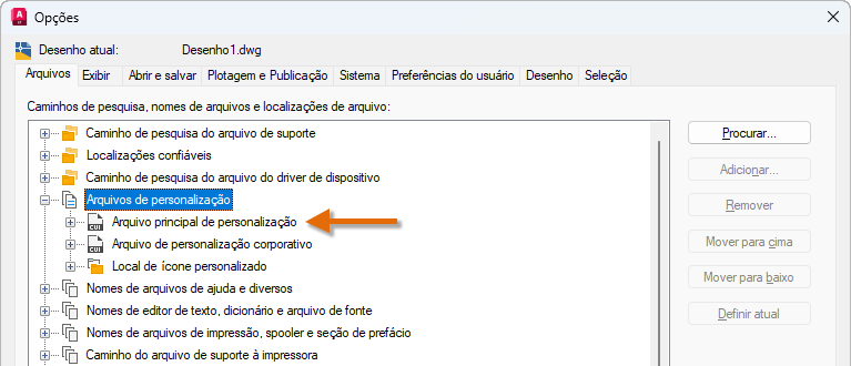 Os aquivos de personalização (CUI/CUIx) definem os elementos da interface do usuário, tais como a barra de ferramentas de Acesso rápido (QAT), as guias e painéis da faixa de opções, as paletas, as barras de ferramentas “clássicas” e os menus suspensos. Com base na versão anterior a partir da qual você está migrando, o utilitário Migrar configurações personalizadas procura o arquivo CUI ou CUIx especificado pela configuração do Arquivo de personalização principal. Além dos arquivos de personalização parciais carregados no arquivo CUI/CUIx principal, o arquivo de personalização principal também é migrado.