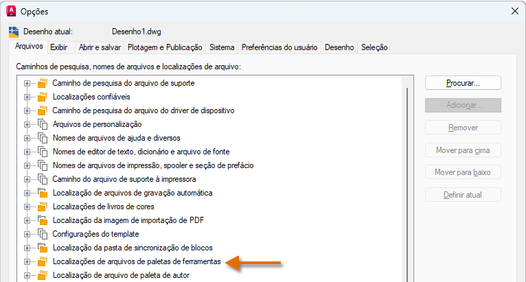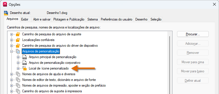 As alterações feitas no perfil de usuário são armazenadas no Registro do Windows e são migradas. Nota: Não está disponível no AutoCAD LT.