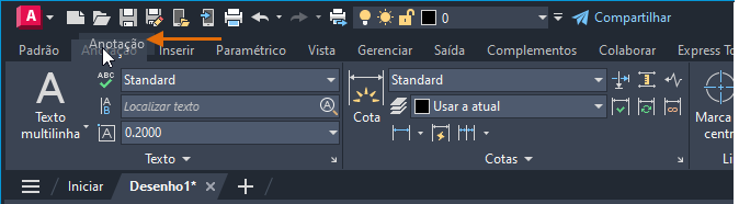 Neste exercício, você vai reposicionar a guia Anotação e o painel Cotas.