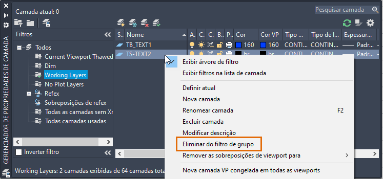 É possível salvar vários filtros de camada em um desenho, mas somente um filtro de camada pode ser aplicado de cada vez.
