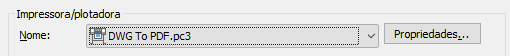 Na caixa de diálogo Plotar, escolha as configurações que você deseja salvar. Por exemplo, para o nome da impressora/plotadora, navegue pela lista suspensa e clique em DWG para PDF.pc3.