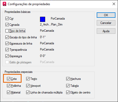 As propriedades especiais aplicam propriedades,que são específicas do tipo de objeto de origem, a objetos de cota que incluem o estilo de cota e outros elementos.