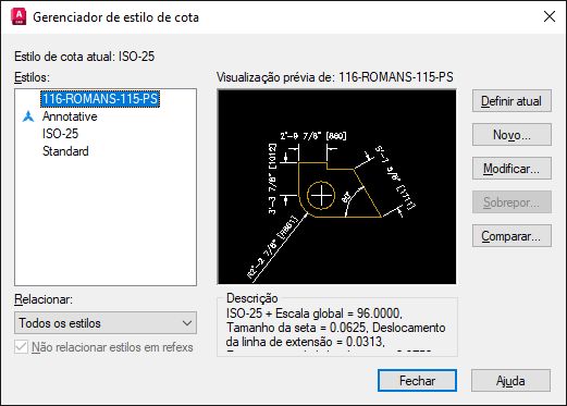 A cota é atualizada conforme esperado. Mas se o estilo de cota não existir, ele será criado no desenho. Verifique isso usando o comando ESTILOCOTA. Pesquisa