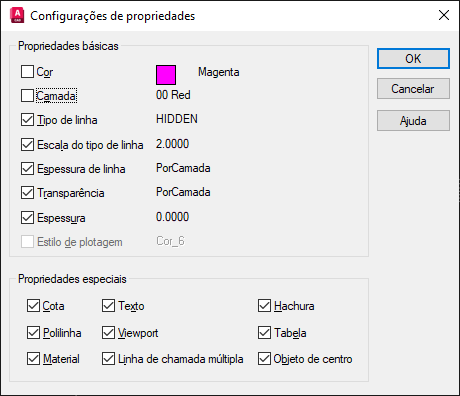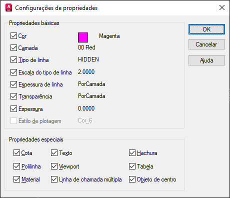 A capacidade de copiar e colar objetos é uma funcionalidade comum a qualquer produto de software de qualidade. Mas você sabia que pode copiar e colar propriedades de um objeto para outro? As propriedades podem incluir propriedades gerais do objeto, como camada, cor, tipo de linha, escala de tipo de linha e espessura de linha. Também podem incluir propriedades específicas para um tipo de objeto, como o estilo de cota ou o padrão de hachura.