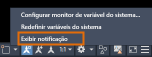 As notificações são ativadas por padrão. Se uma variável de sistema que você está monitorando for alterada, um ícone será exibido na barra de status (localizado no lado inferior direito, abaixo da área de desenho).