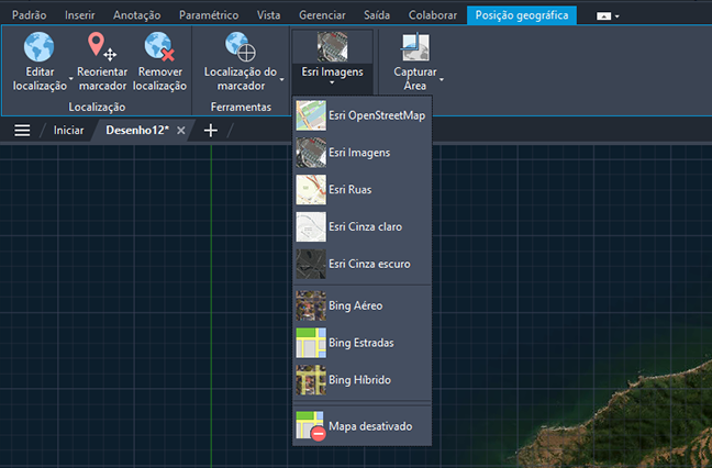 Agora é possível usar cinco tipos adicionais de mapas Esri para atribuir informações de localização geográfica a um arquivo de desenho.