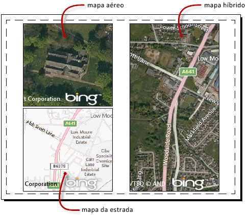 É possível exibir o mapa como uma imagem de satélite (Imagens Esri) ou como uma imagem vetorial (OpenStreetMap Esri). Se a área de desenho for dividida em várias viewports, cada viewport poderá ter um estilo diferente de mapa.