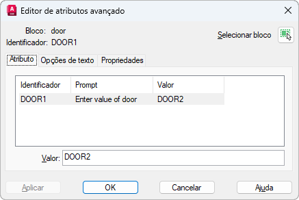 Nota: É importante certificar-se de que os identificadores de atributo tenham nomes únicos. O Editor de atributos avançado exibirá quaisquer identificadores duplicados em vermelho. Identificadores duplicados causarão problemas ao extrair dados ou se forem utilizados em blocos dinâmicos.