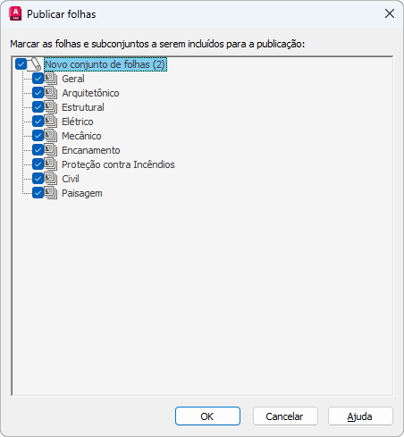 Quando uma folha é selecionada, ela é incluída para publicação.