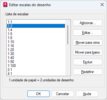 Caixa de diálogo Editar escalas do desenho