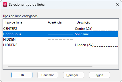 Exibe a lista de tipos de linha carregados no desenho atual.