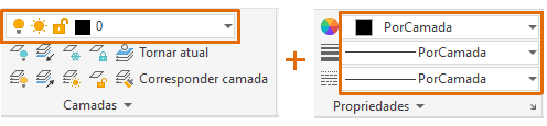 Na guia Início da faixa de opções, utilize as camadas e painéis de propriedades para verificar ou alterar as configurações para as propriedades mais comumente acessadas: camada, cor, espessura de linha e tipo de linha.