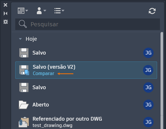 Use qualquer um dos métodos a seguir para abrir a barra de ferramentas Comparar versões no desenho atual: