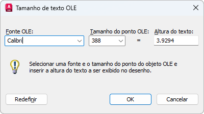 O objeto OLE é redimensionado automaticamente para acomodar o tamanho do texto.