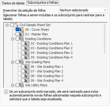 Guia Subconjuntos e folhas (caixa de diálogo Tabela de lista de folhas)