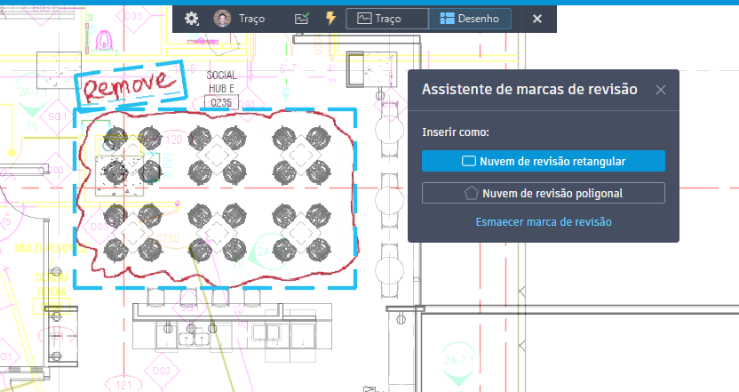 - Ao inserir uma nuvem de revisão com o Assistente de marcas de revisão, agora é possível escolher inserir como uma nuvem de revisão retangular ou poligonal. A inserção como uma nuvem de revisão retangular usa a borda realçada como o tamanho e a forma definidos da nuvem de revisão. A inserção como uma nuvem de revisão poligonal usa a forma aproximada da marca de revisão detectada como o tamanho e a forma definidos.