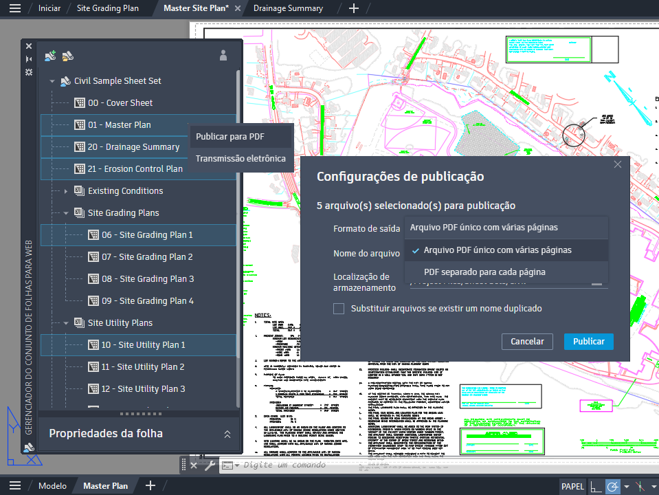 Algumas das alterações incluem a capacidade de selecionar várias folhas para publicação, definir como publicar ou transmitir as folhas selecionadas, mais controle sobre o nome e a localização do arquivo PDF (ou Transmissão eletrônica) e uma opção para substituir os arquivos existentes durante a publicação e o Transmissão eletrônica.
