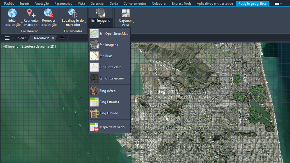 Agora é possível usar cinco tipos adicionais de mapas Esri para atribuir informações de localização geográfica a um arquivo de desenho.