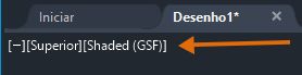 No estilo visual Sombreado, (GSF) é exibido no controle da viewport para indicar que a visualização técnica está ativa e usando o sistema gráfico moderno.