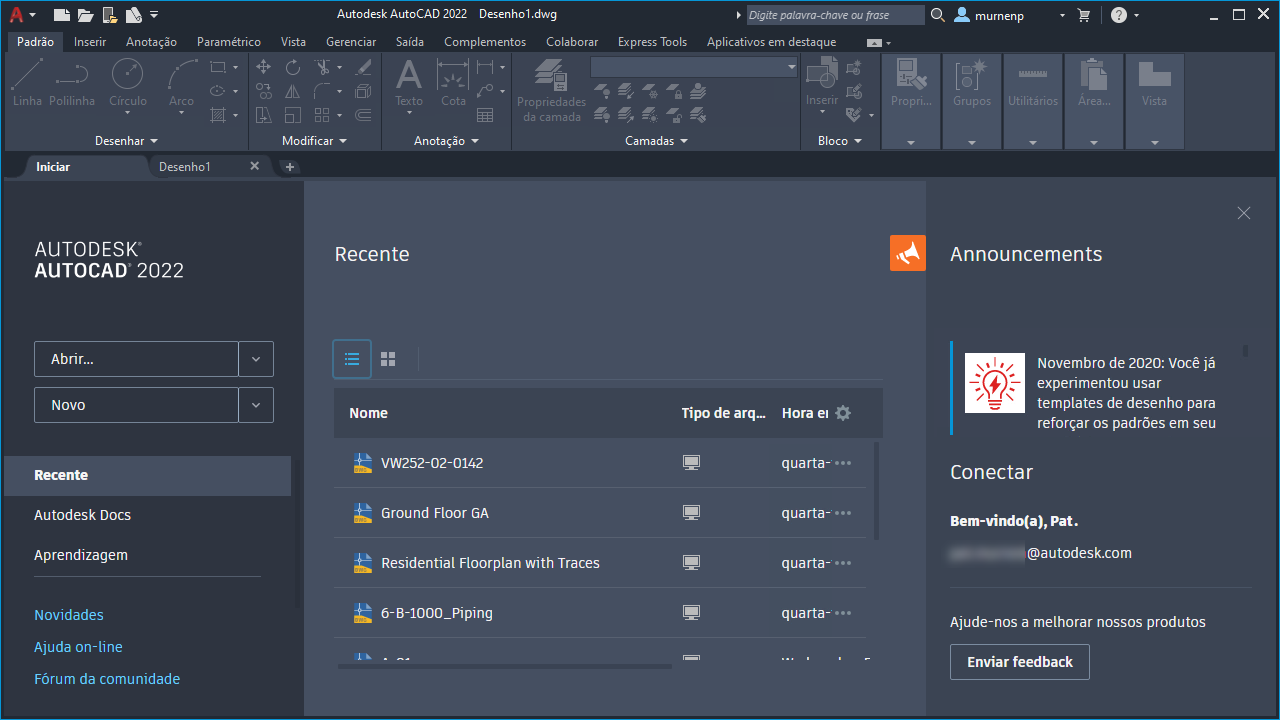 A guia Iniciar foi reprojetada para fornecer uma experiência de boas-vindas consistente nos produtos da Autodesk.