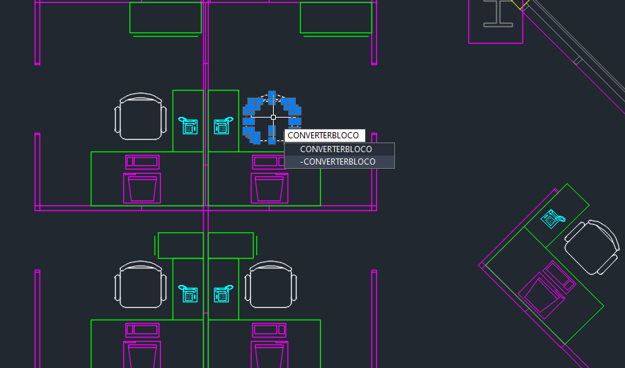-CONVERTERBLOCO – No prompt do comando, converte as entidades selecionadas e as instâncias idênticas em blocos.