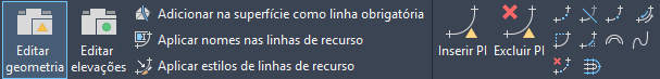 Conquanto o comando Extend do AutoCAD funciona com as linhas de recurso, estas não se podem editar com os comandos Break ou Trim do AutoCAD dado que resultam elementos demasiado complexos. Para solucionar este problema, os comandos quebra de linha do recurso e aparar foram adicionados à linha do recurso painel Editar geometria, como mostrado na Imagem 2. Os comandos quebrar e aparar fornecem um controle mais preciso sobre linha do recurso com as operações de edição.