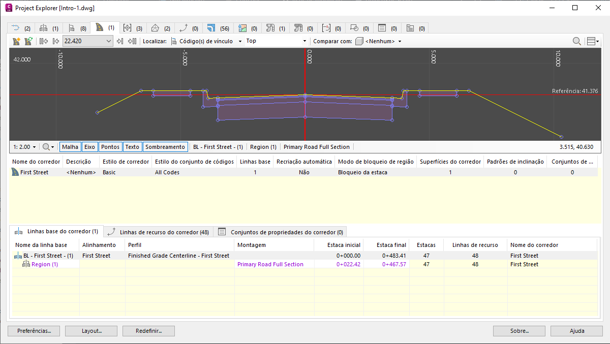 Modifique o intervalo de estaca de alinhamento/perfil (sequenciamento) para entidades de linha, entidades de curva e entidades de espiral.