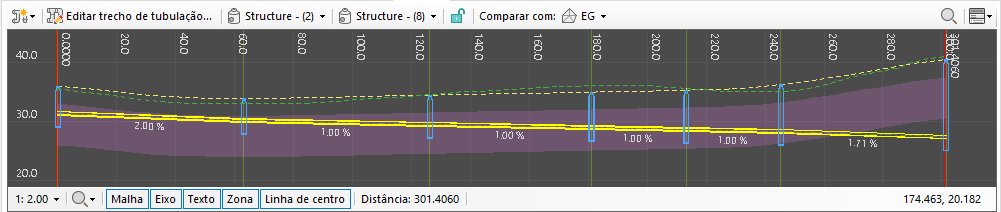 Para obter mais detalhes, consulte a seção Gráfico de seção e de perfil longitudinal no tópico Janela de preferências.