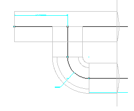 - Adicione o caminho para o cotovelo curvo. Quando a caixa de diálogo Inserir o número de segmentos do caminho for exibida, verifique se “Não segmentar caminho” está marcada e clique em OK. Em seguida, adicione o modificador de caminho para o segmento vertical da tubulação de queda. Utilize o perfil Diâmetro da tubulação de queda.