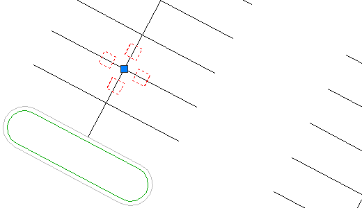 No desenho, todas as linhas de praça de estacionamento estão selecionadas.