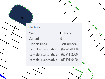 A dica de ferramenta exibirá a descrição e a ID de cada item do quantitativo que foi atribuído ao bloco.