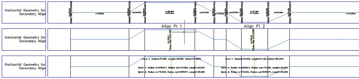 - Novas opções de faixa de geometria horizontal foram adicionadas para exibir e legendar informações de alinhamento secundário.