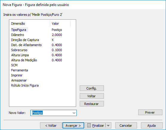 Direção de Captura — Selecione a direção de captura no menu Novo Valor entre -X, +X, -Y, +Y, X, Y, ou XY.