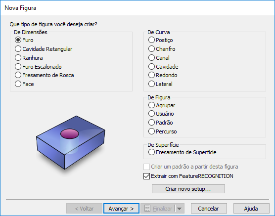- Clique em Avançar para exibir a página Nova Figura - Ferramenta Padrão para a primeira operação.