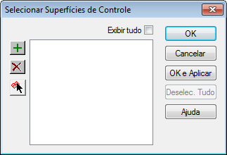 Para exibir o diálogo Selecionar Superfícies de Controle, clique em Superf. de Controle na guia Dimensões do diálogo Propriedades da Figura de Fresamento.