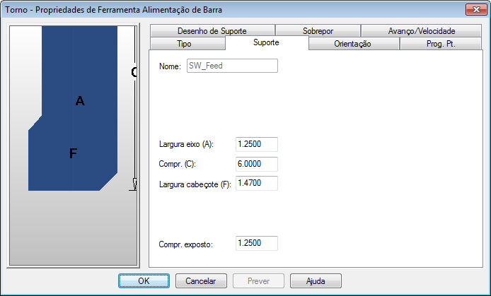 Comprimento exposto — É a porção da ferramenta que se projeta do suporte quando o suporte é simulado.